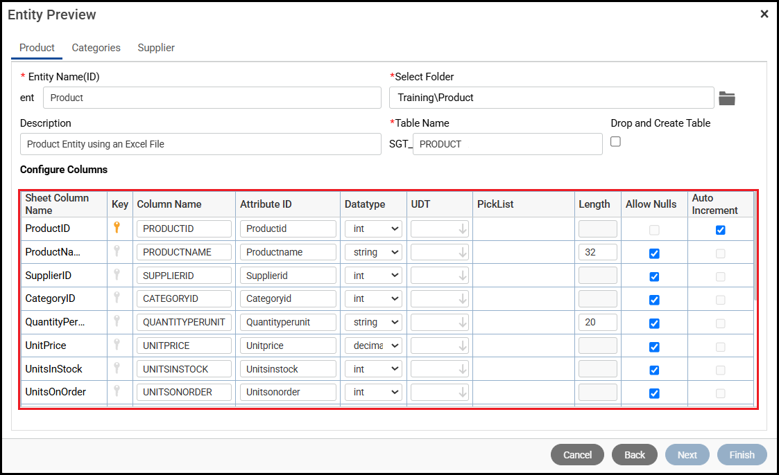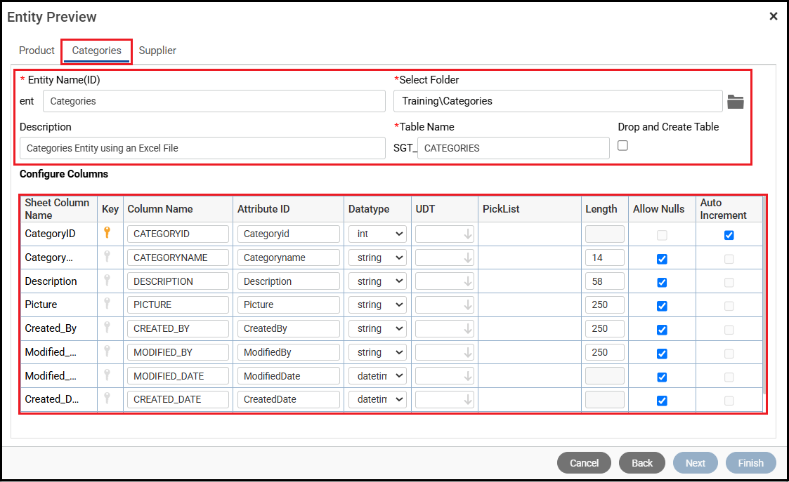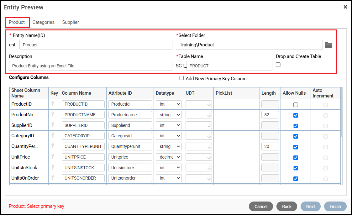 This is how you are creating the entity. Here, you are creating an entity with an excel sheet.