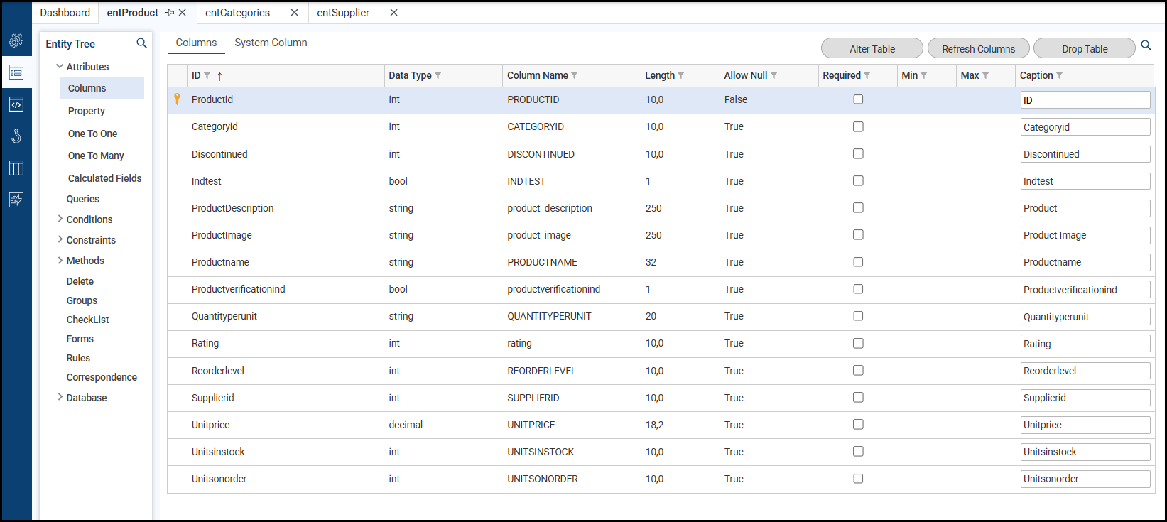 - Drop and Create Table: If checked, this first deletes the existing table in the database and then creates a new table based on the entity configuration.