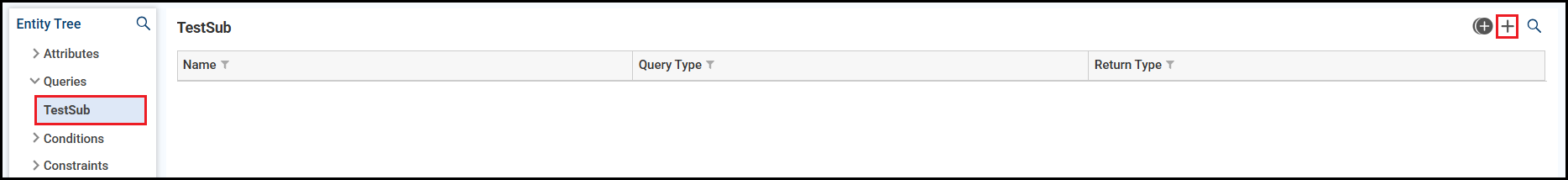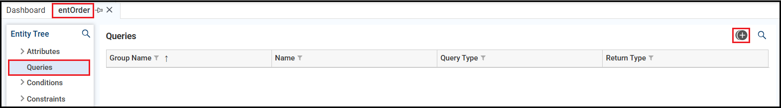 This is where the entity manages its queries. Click the + icon to add a new group.