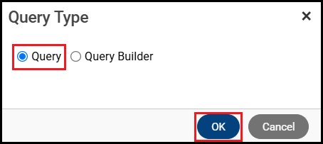 Select the Query Type, then click OK |