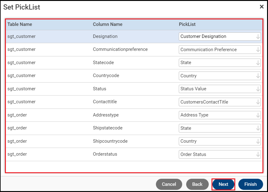 This step shows all the Picklists that are automatically generated by the system. Before completing this step, it’s helpful to review the different Picklists. It is a good reference guide.