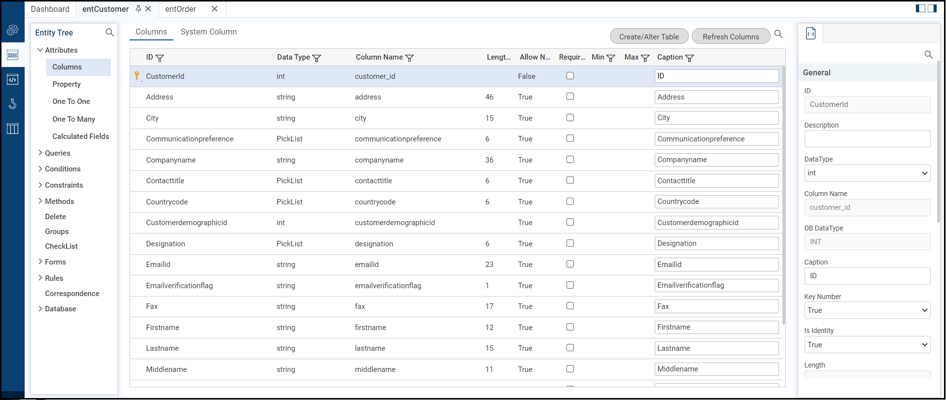 You can create entities in Xelence with different methods. One of these methods is with data from an existing database table. This creates an entity for working with that table.