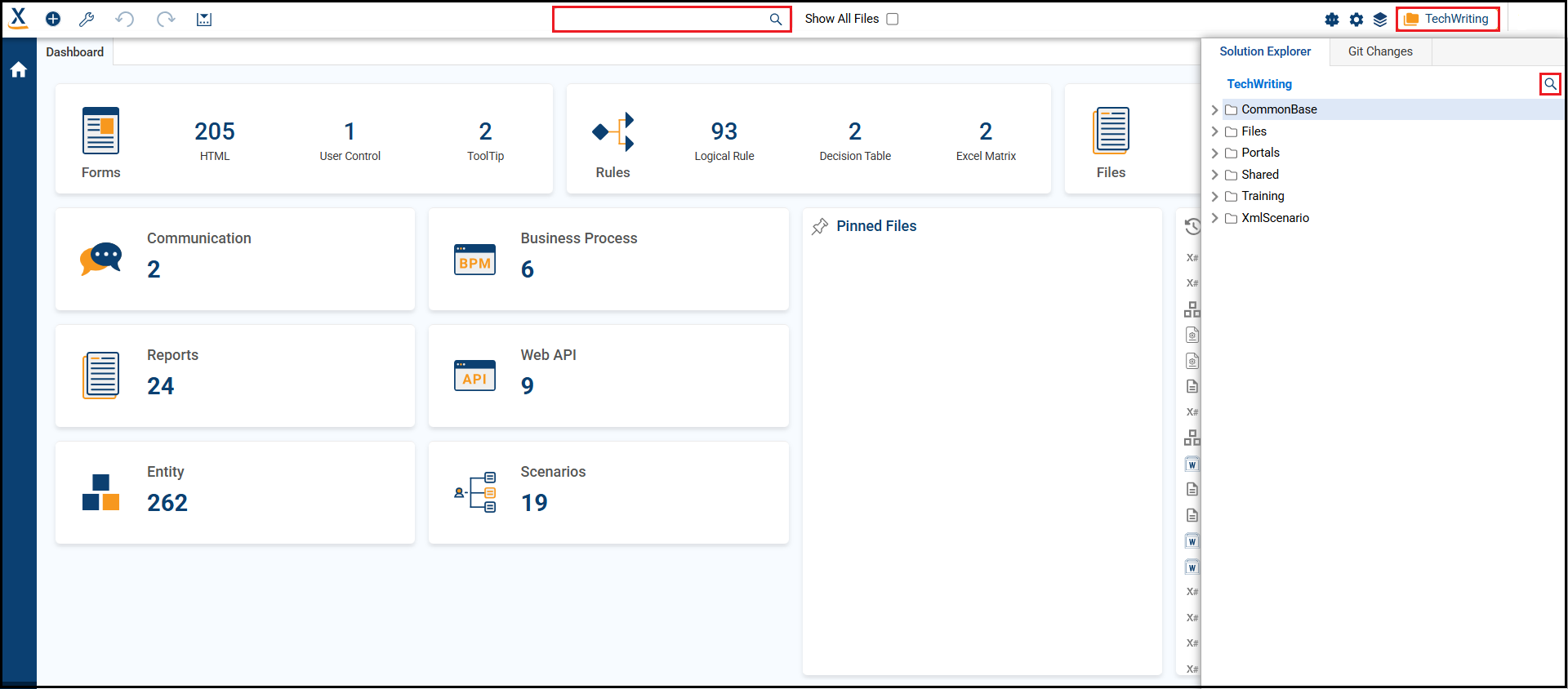 When you open Xelence’s Development Studio, the global search menu across the top provides a quick search option. You can also search for the entity from the Solution Explorer.