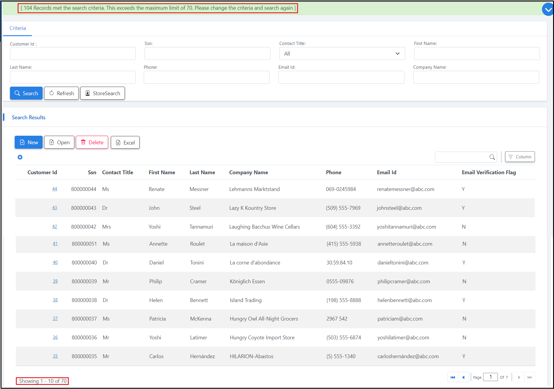 - Max Count: Number of search results the form displays unless a search returns fewer results. The default value for lookup screens is 100.