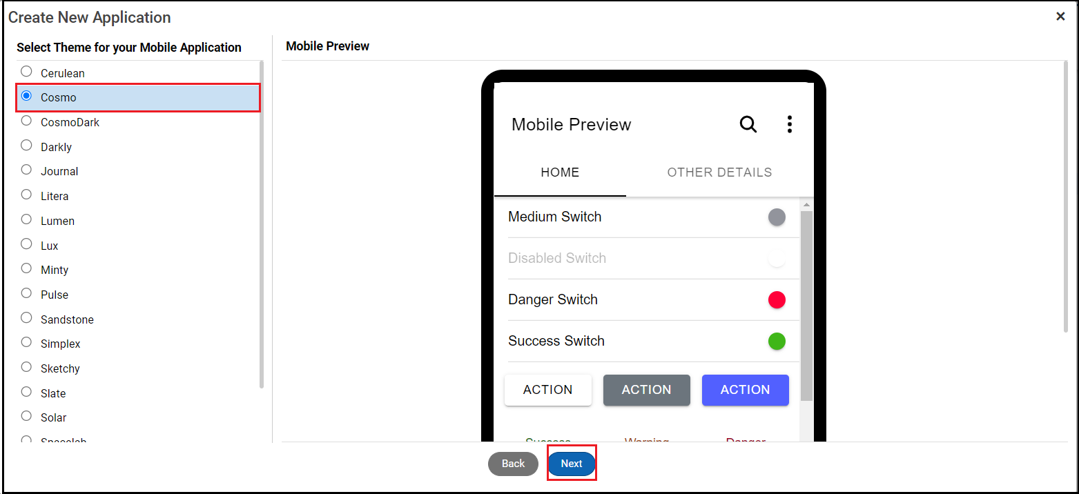 Step 8. Select the mobile application theme, then click Next.