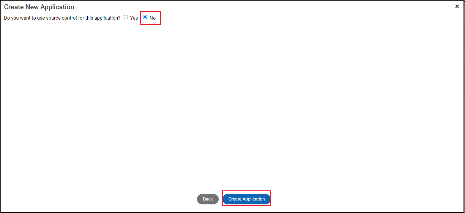 Step 9. Enter the Source Control information, then click Create Application.