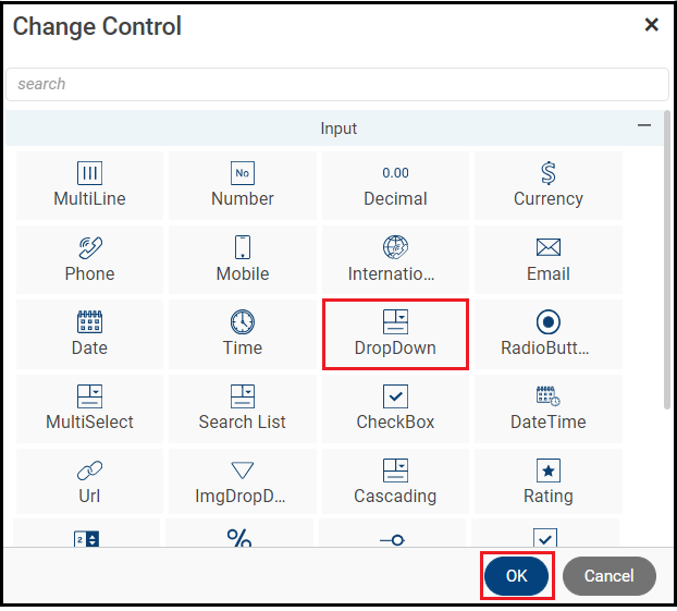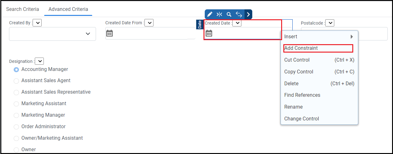 In the entity attributes, select the column that stores the value you want to use and drag and drop it to the advance criteria panel. Xelence creates a new row under the selected row and drops the control there, with a caption above the control. The controls are available for further configuration; if that’s not needed then they are ready for the user to search with.