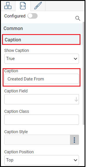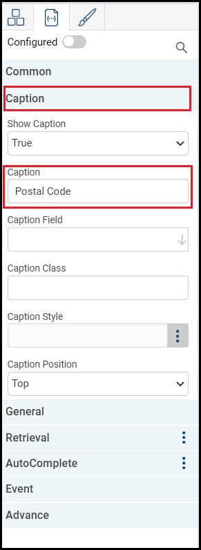 If the control is a field, at minimum, enter its Query Field and Caption. The Query Field binds the control to the table column. The Caption names the field for the user.