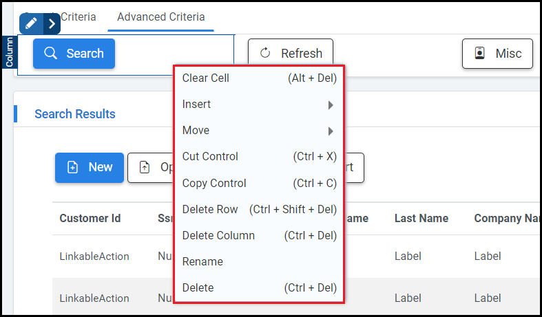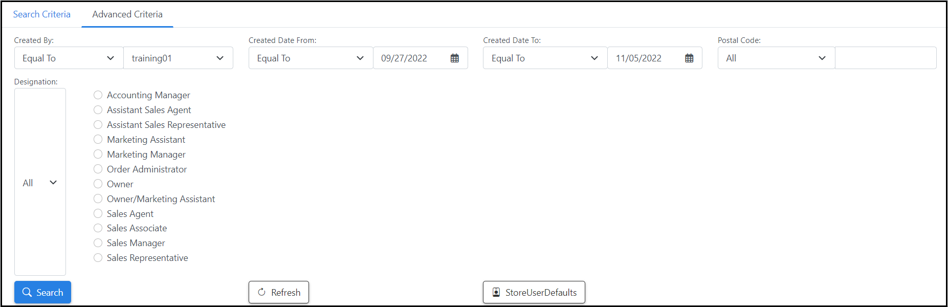 The Advanced Criteria tab allows advanced users to select the operator they want to use with a given criterion. By contrast, the Criteria tab always uses the operator associated with a given criterion at design time; users have no ability to change the operator.