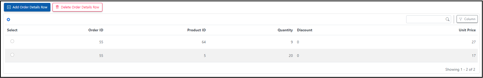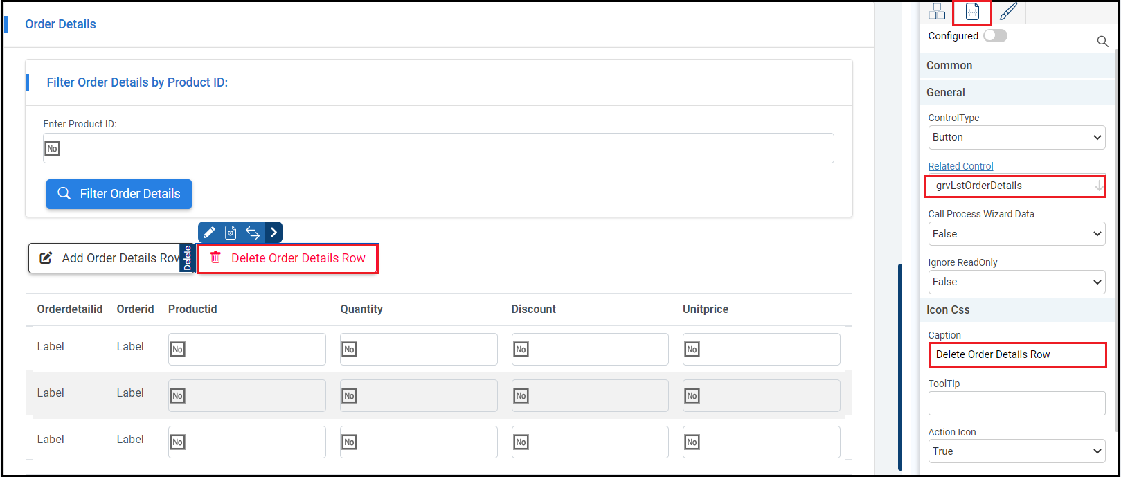 - Related Control: Data table this button affects. In this case, that's grvLstOrderDetails.
