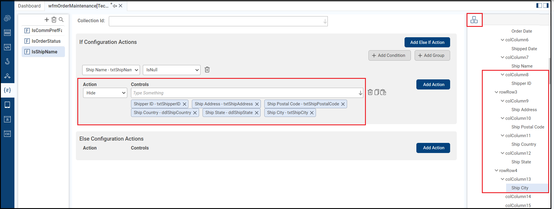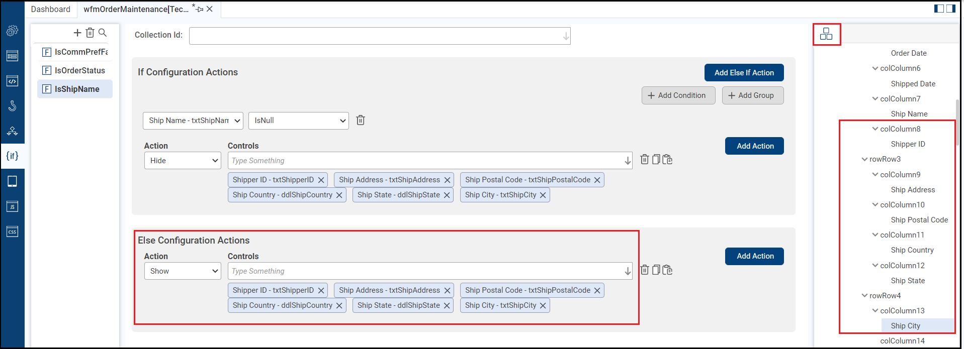 Similarly, you can configure a condition for IsShipName ID. You need to select the desired fields to enter the condition.
