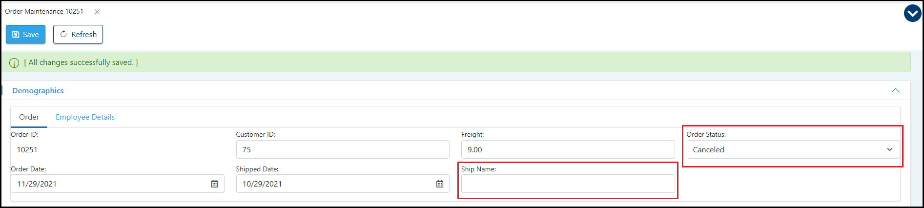 Open the form you want to configure. This example uses the Order Maintenance form.