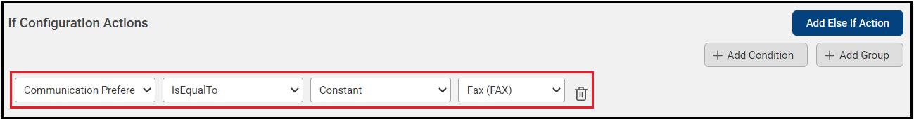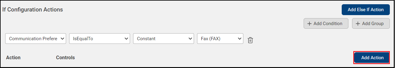 Click the Add Action button in the Else Configuration Actions section to add an action to take if the condition is false.