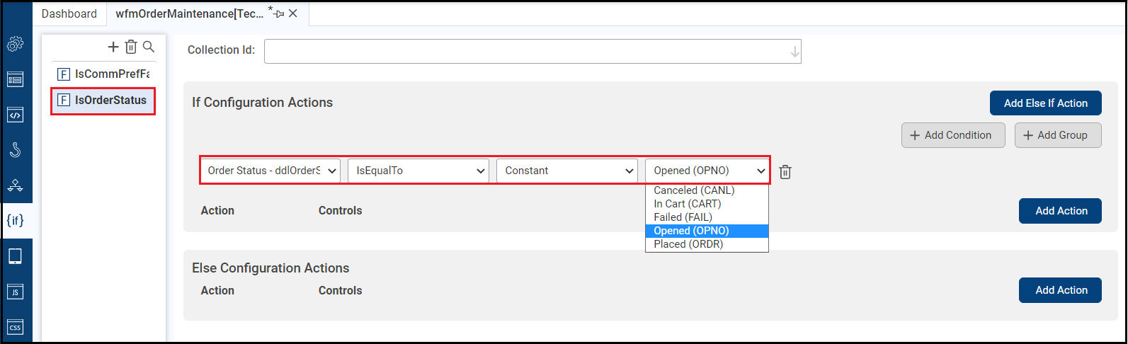Similarly, you can configure a condition for IsOrderStatus ID. You need to select the desired fields to enter the condition.