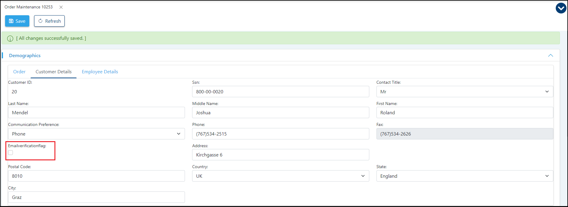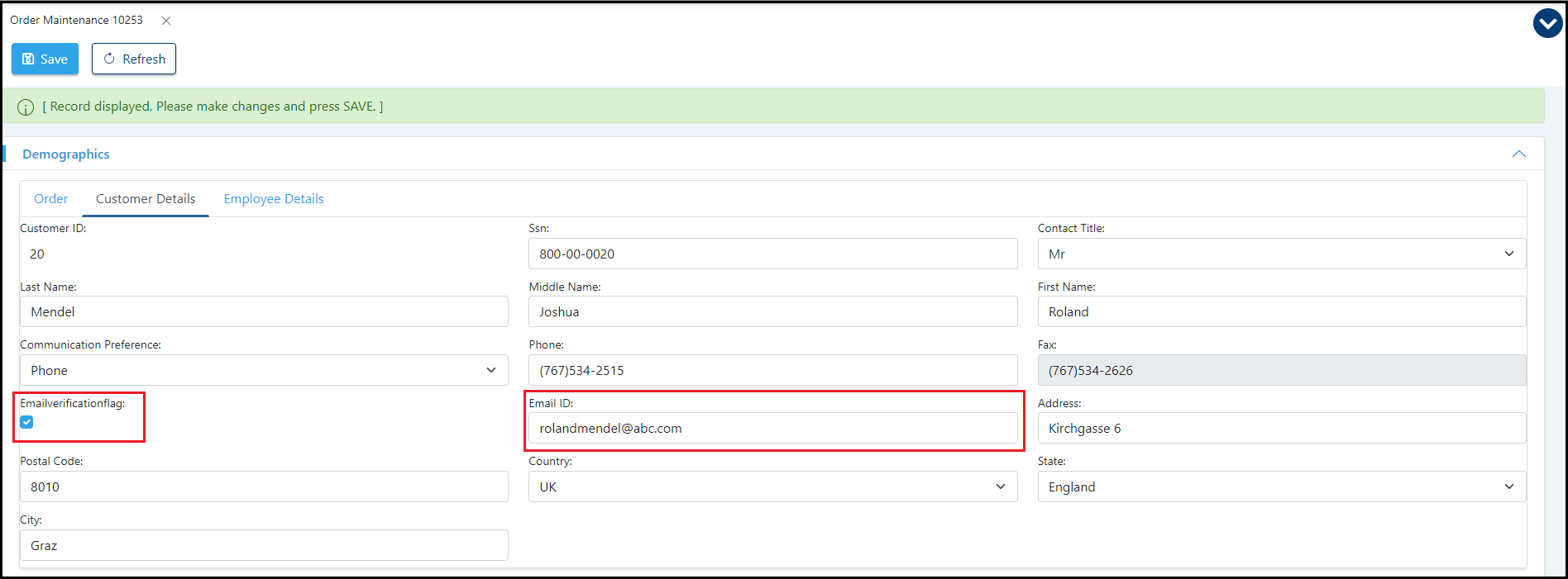 In this example, Email Verification Flag is not checked, so the Email ID field is hidden.