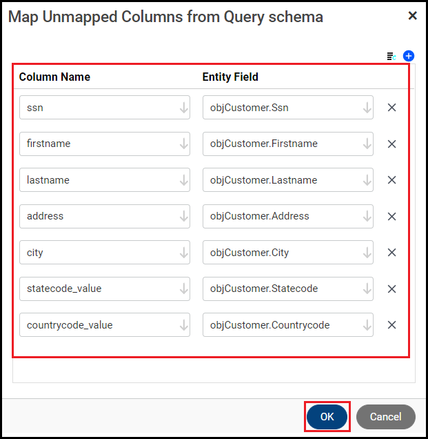 The query comes from the entity and must have its joined columns mapped. If you have not yet mapped the columns you want to use on the form, do so now.