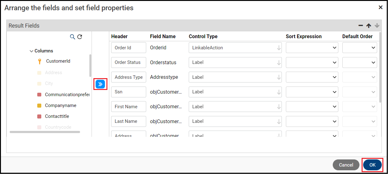 If the form searches more than one table, you may need to display the values returned from the non-form tables. The only way you can do this is by adding the columns to the search results. You can add a property for this in the Properties section.