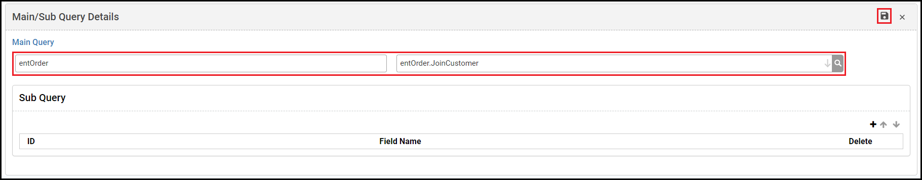 Step 5. Save the query details in the Main/Sub Query Details section.