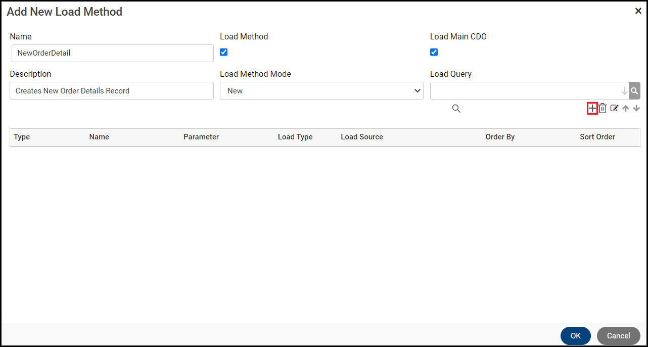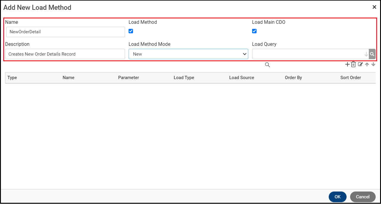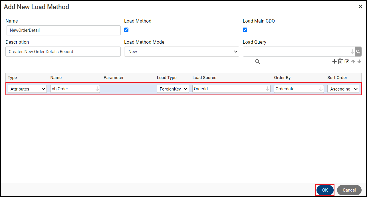 - Load Method: If checked, the method can be used to load the data on the forms. You can also specify the mode for which the load method can be called. Options are New, Update, or All.