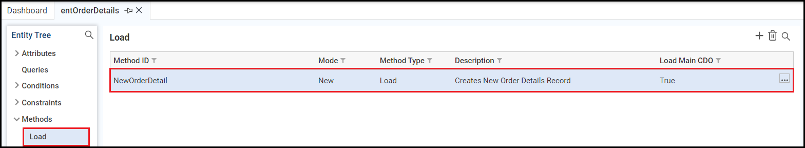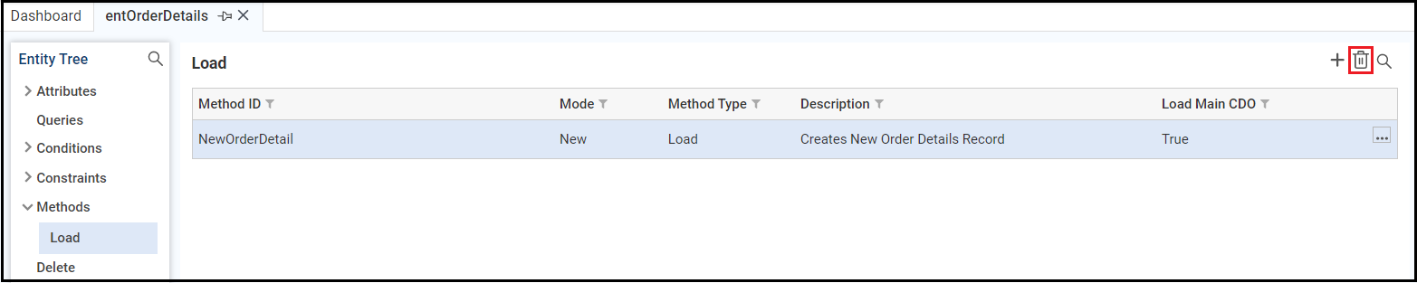 In the Load Methods section, choose whichever method you'd like to delete. Click the Delete icon.