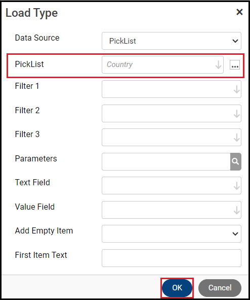 - PickList Field: Framework table ID that contains the value records that populate the list.