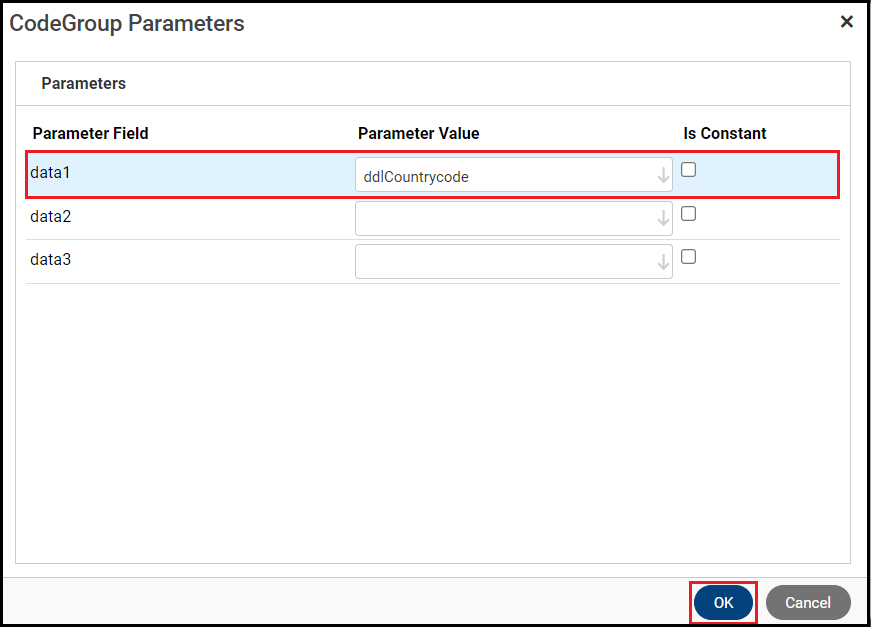 Enter the control that contains the data of the Parameter Field you're using in this ID's value records. This data is set in the Codes table, which you can access via the application.