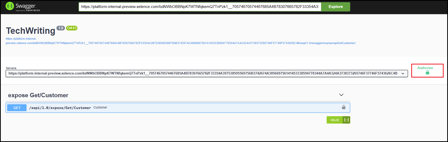 Step 2. Open Swagger, then click the Authorize button.