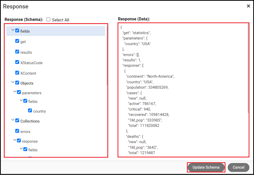 Step 7. Select the desired fields and collections, then click Update Schema.