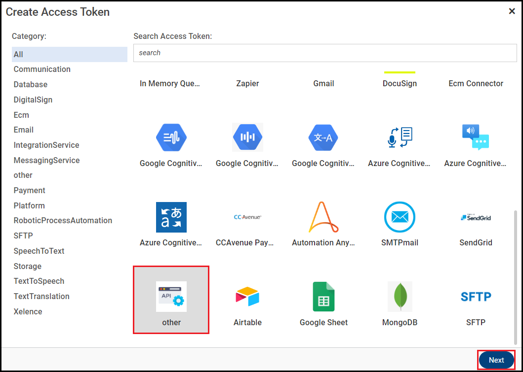 - Authentication Type: Defines how the token authorizes. Select from the below options: