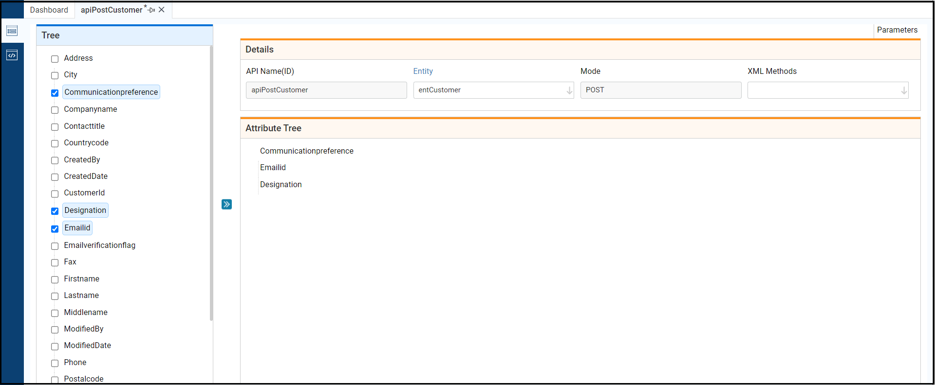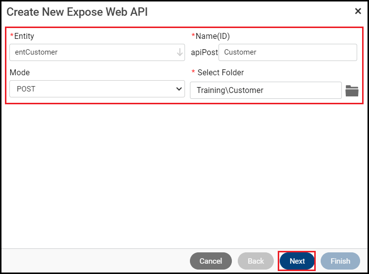 - Entity: The Web API is based on the entity. The fields to be exposed will be mapped to this entity's attributes.