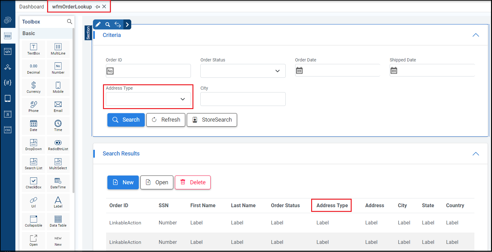 Add the control you want the application to use to determine which form to open if it is not already present. This example uses the Address Type drop down.