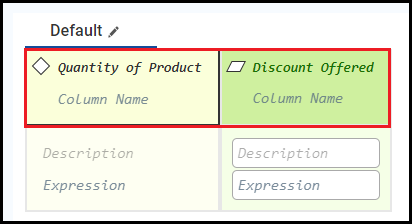 For each cell, enter the description of its expression or value, then enter the expression or value itself. An expression defines the input that returns the associated result, and the value defines the result that returns, given the associated input.