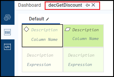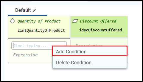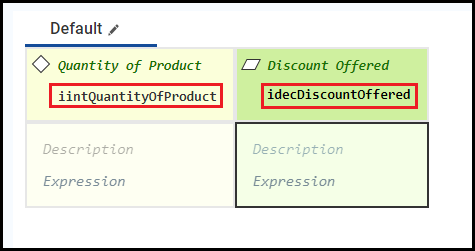 Each cell in a decision table consists of a Description and expression or value. Enter detailed Descriptions so others can understand your decision table.