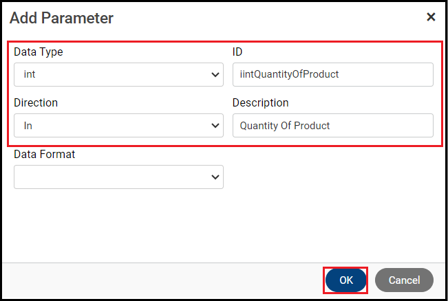 The parameters (variables) you define here will be used later to provide the columns. This example creates two parameters.