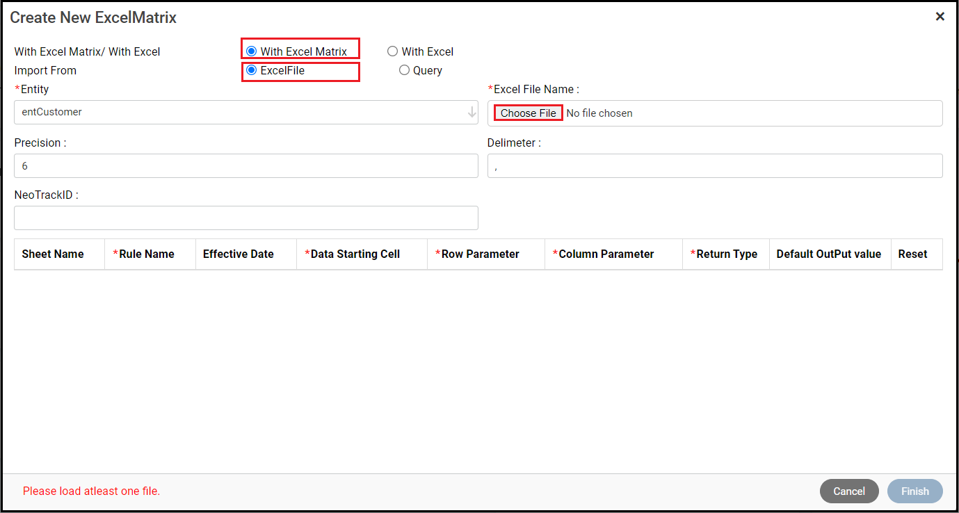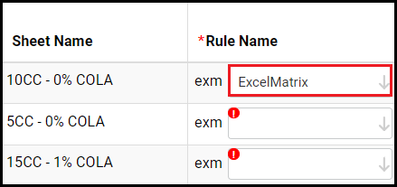 The Rule Type identifies the type of rule the wizard will create. In this case, it is Excel Matrix.