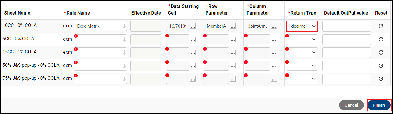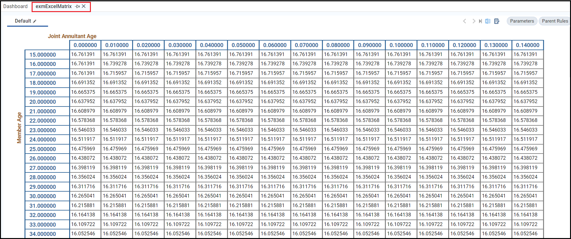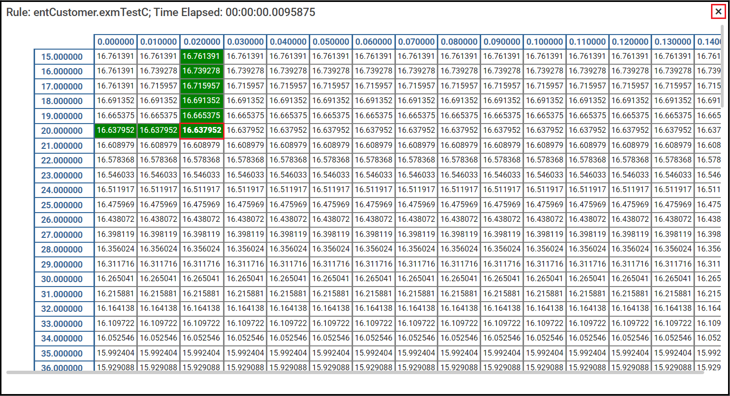 An Excel matrix allows you to import data organized as one X and one Y axis to create logic that can return hundreds of results, like a very large decision table. Once imported, you should test it exactly as you would test a decision table to ensure it returns the values you expect it to.