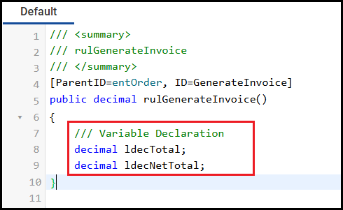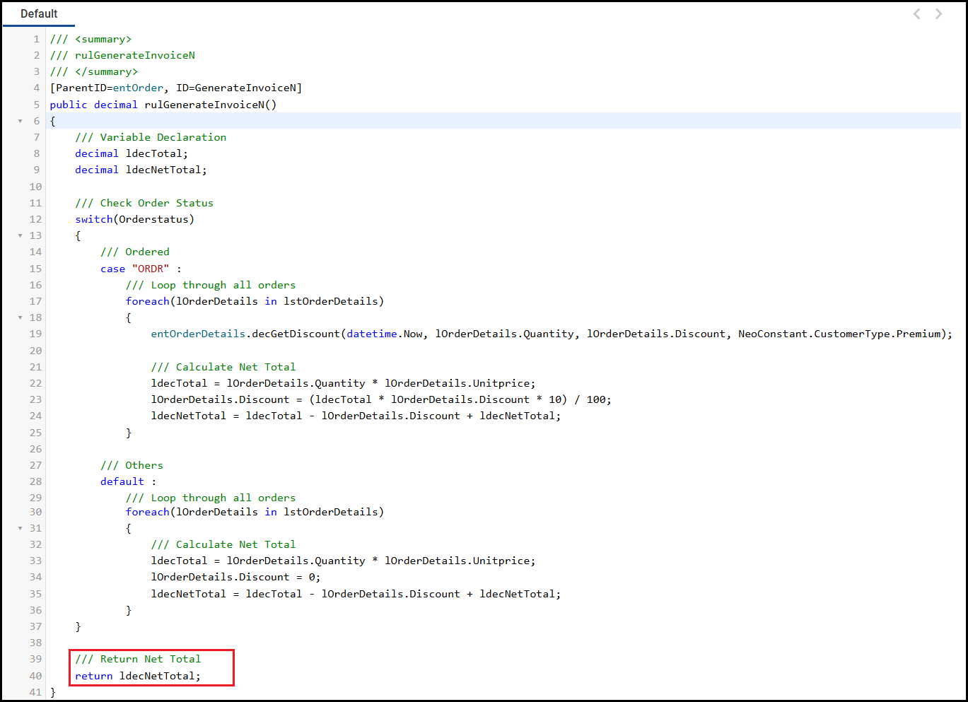 The return value is the ldecNetTotal, the rule calculated in the previous actions.