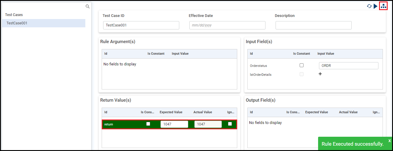 If you want to trace the executed logic, click the View Test Result icon to open the result diagram.