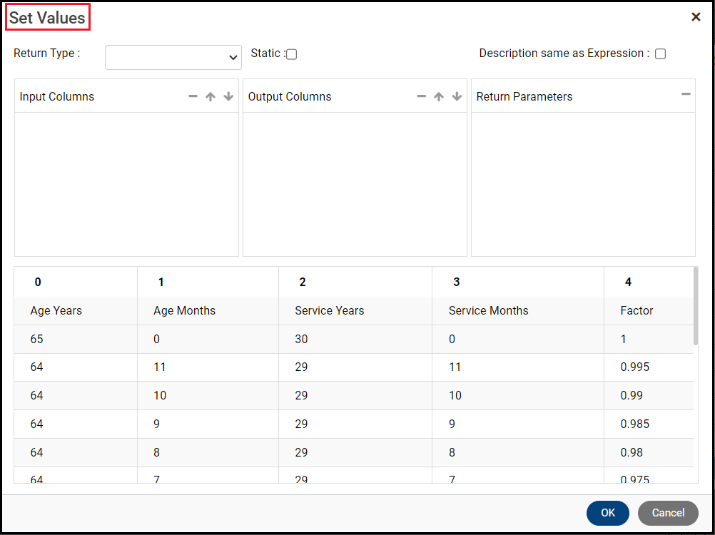 - Description same as expression: If checked, the description for the input conditions will be the same as the expression.