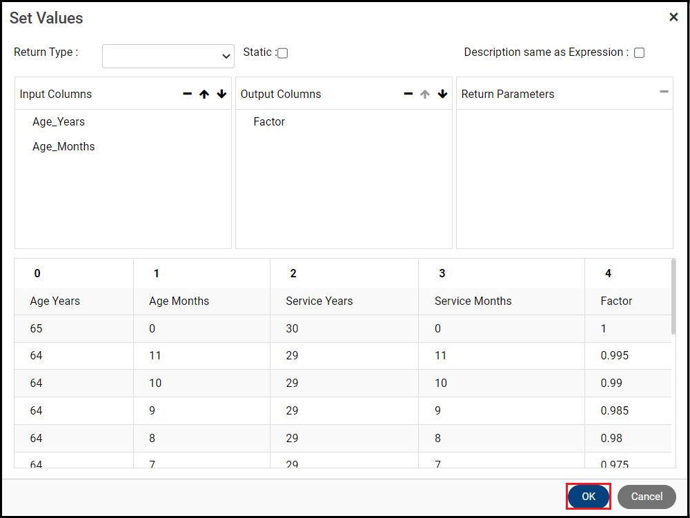 - Return Type: This is the data type of the result parameter you expect the decision table to return (string, int, etc.). This is an optional field.