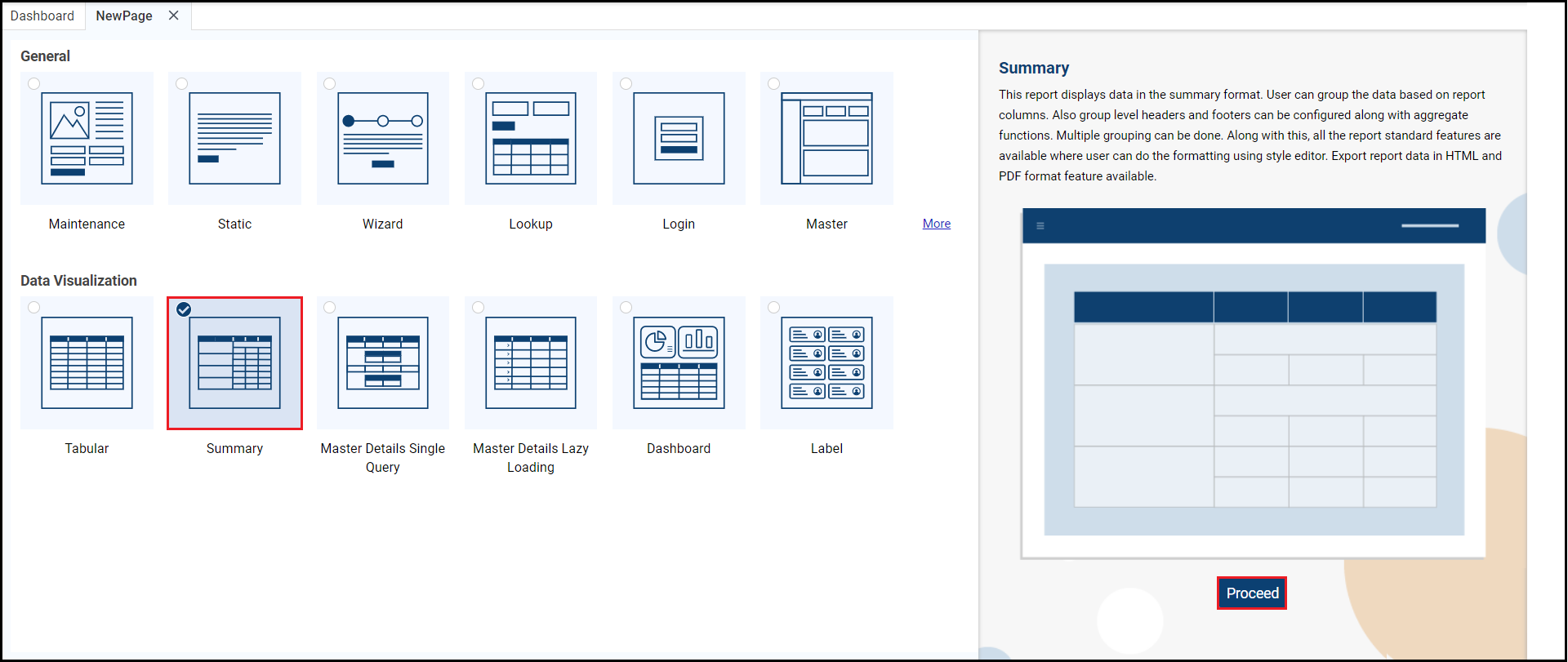 Select the Page Type, then click Proceed |