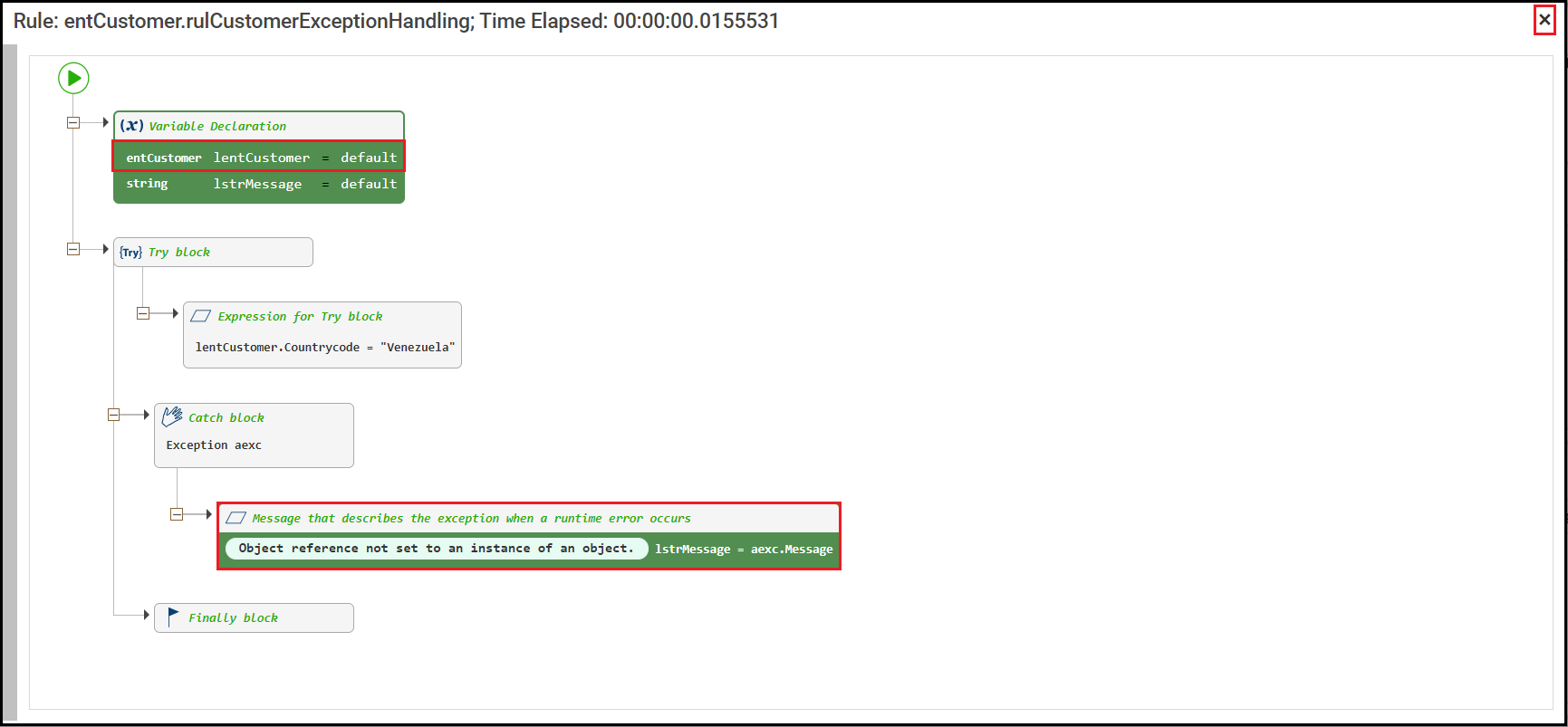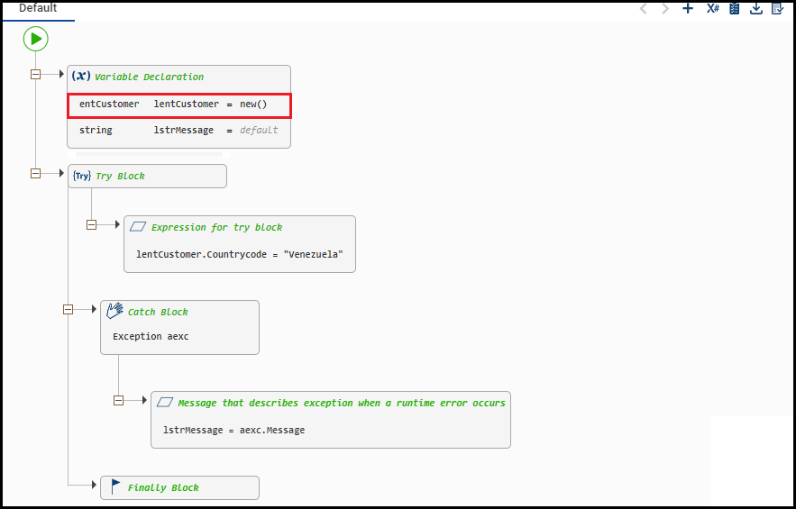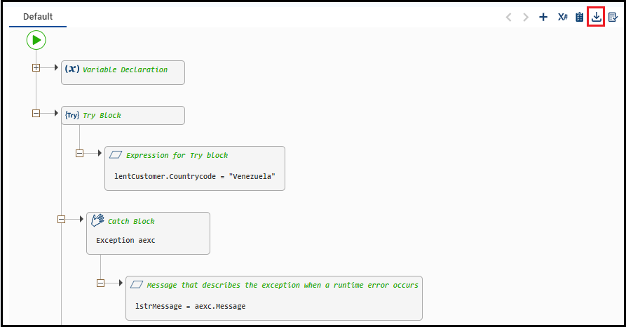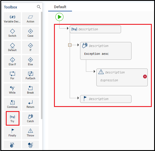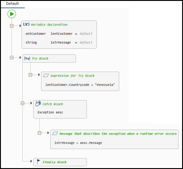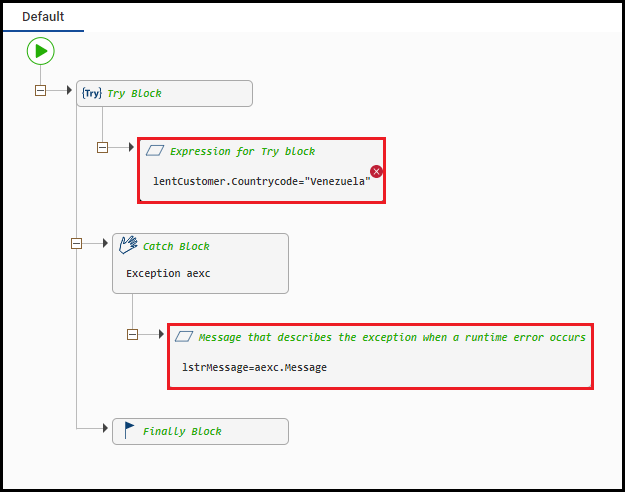 This process uses a Try block in a Logical Rule. This handles runtime exceptions to prevent your app from crashing.