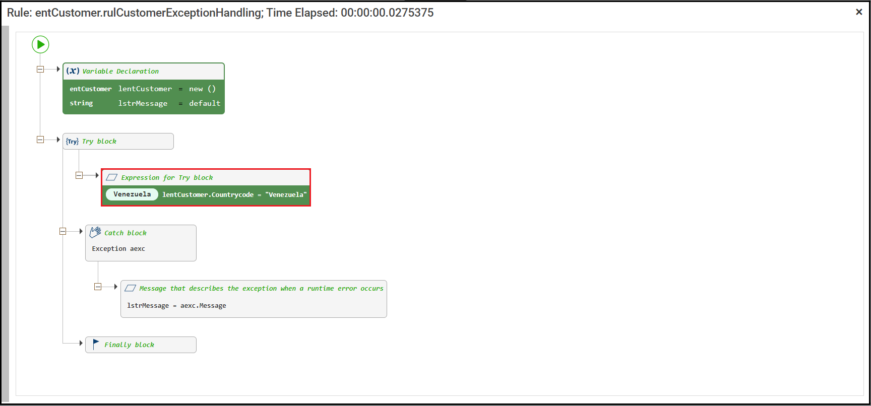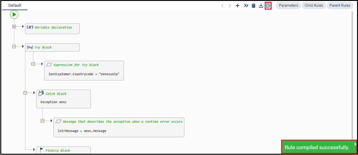 You can add a try block to any new or existing rule. This example creates a new rule and designs it with the try block.