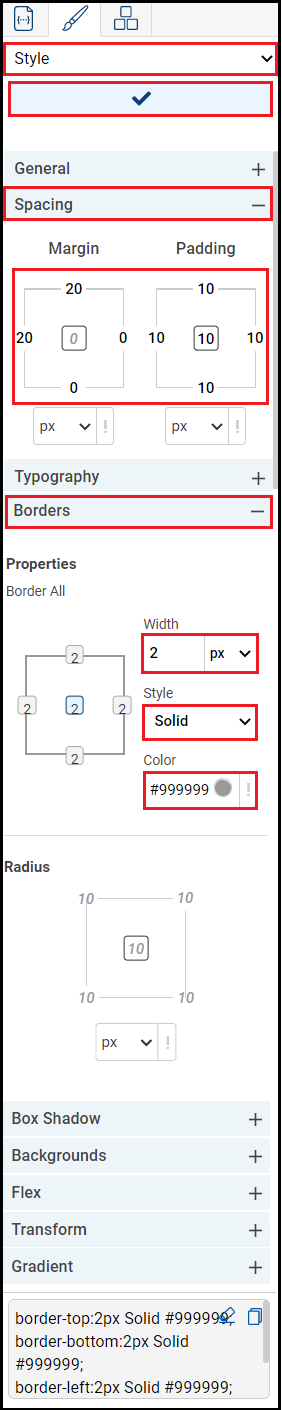 Select the Image control to open the Properties tab. Click the Edit Control Style icon to apply the desired styles. Alternatively, you can edit from the Style Editor tab.