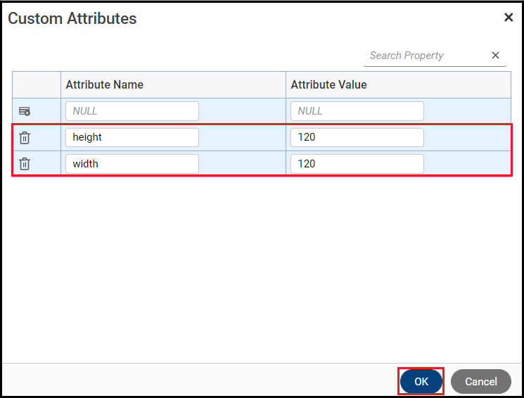 Enter the desired attributes such as height and width, then click OK.