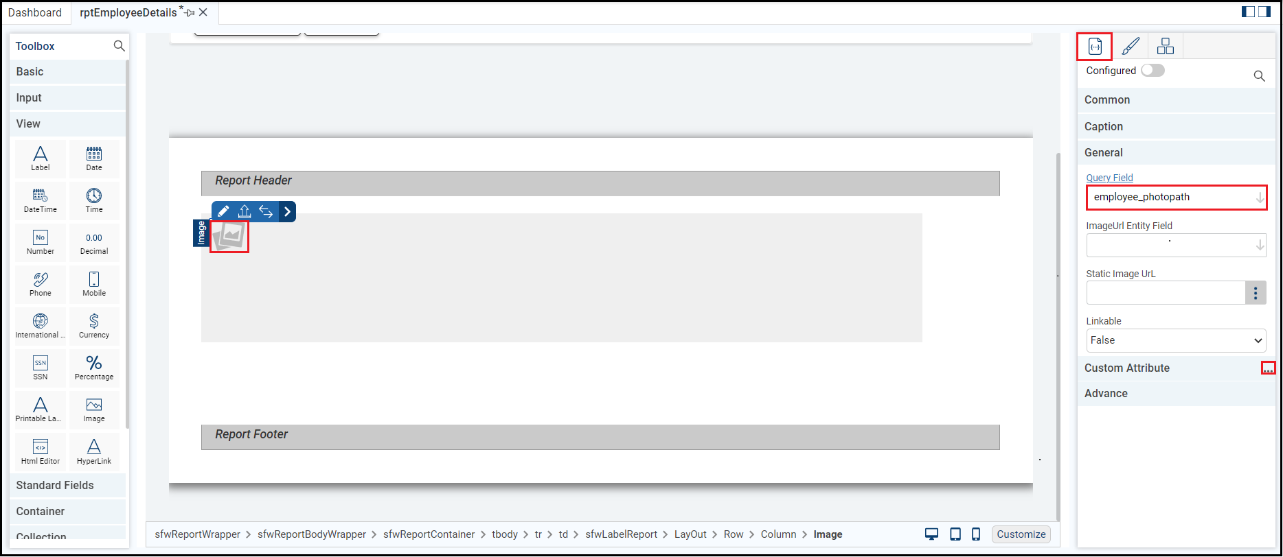 Open the Label report file rptEmployeeDetails to do further configurations.