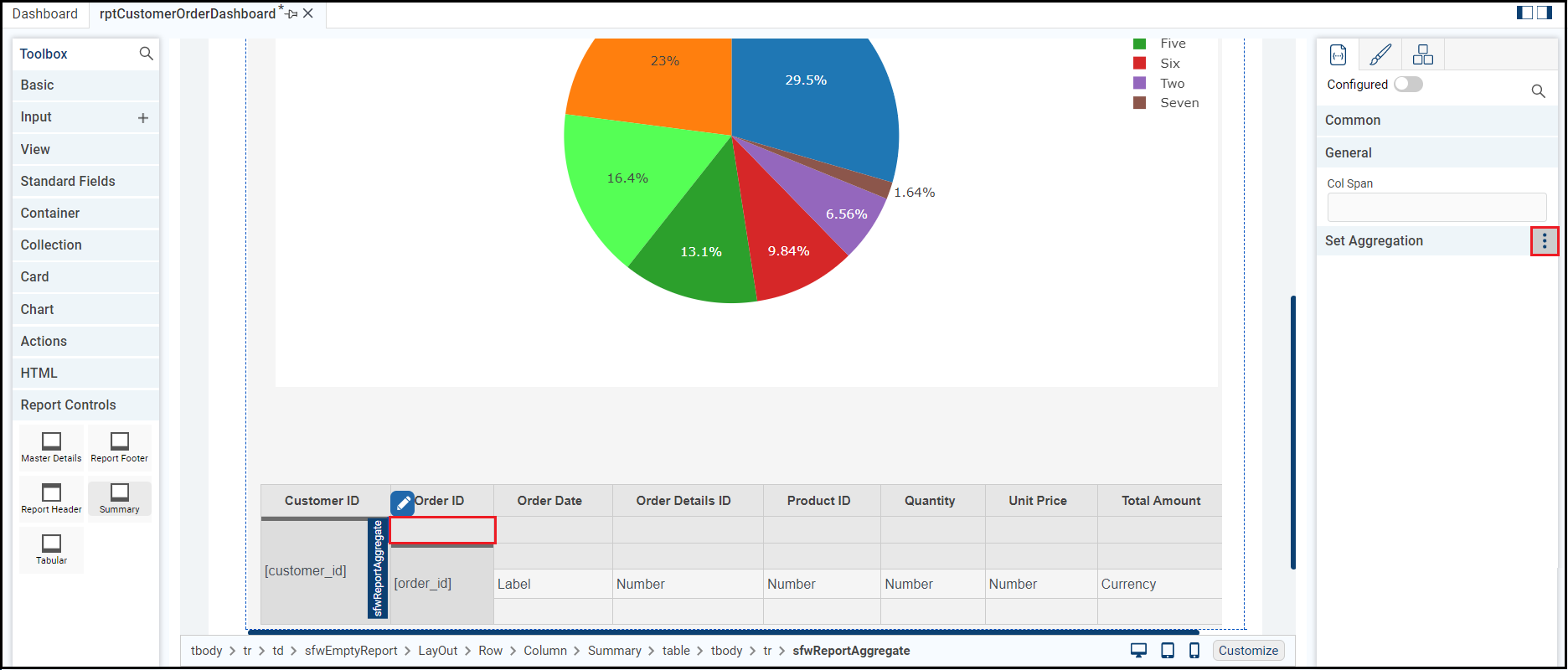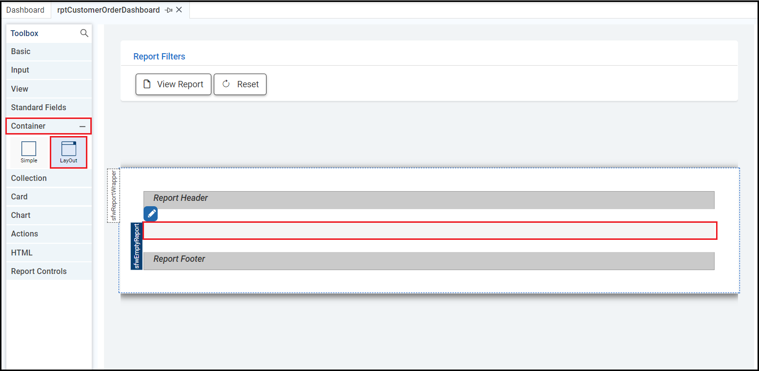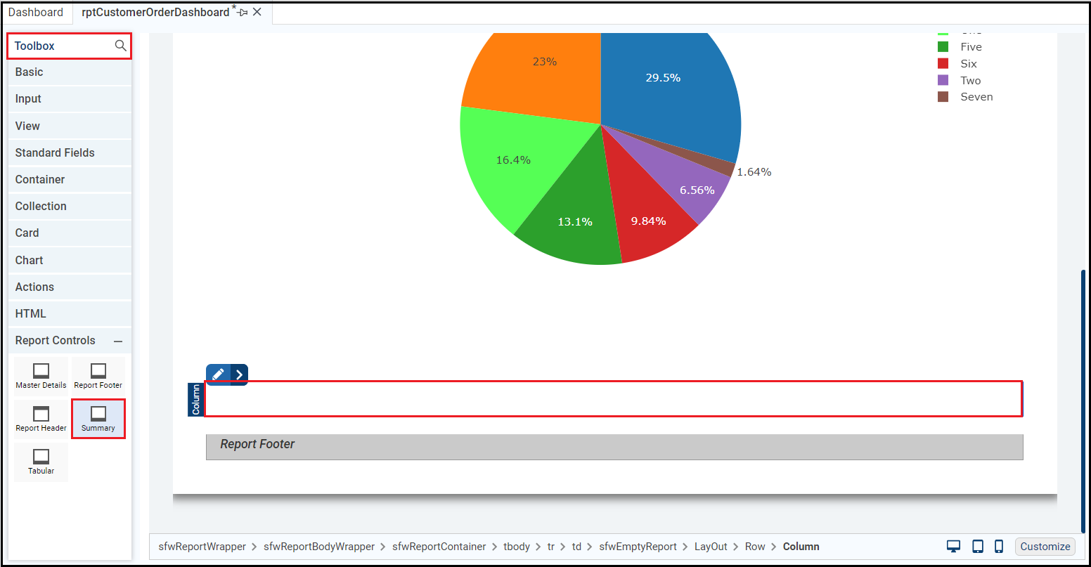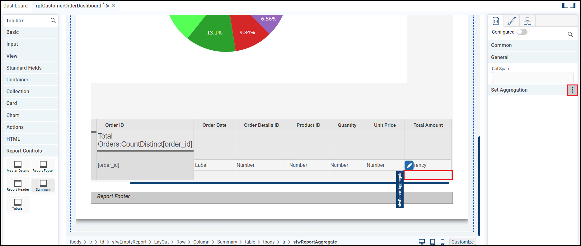 Open the dashboard report file rptCustomerOrderDashboard to do further configurations.