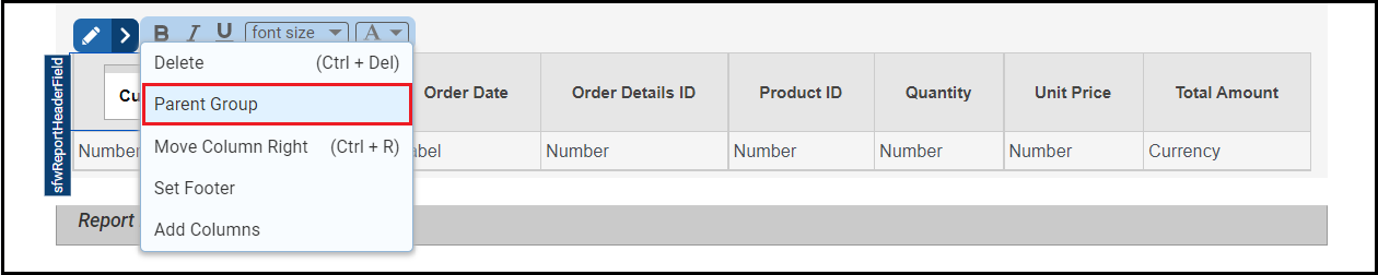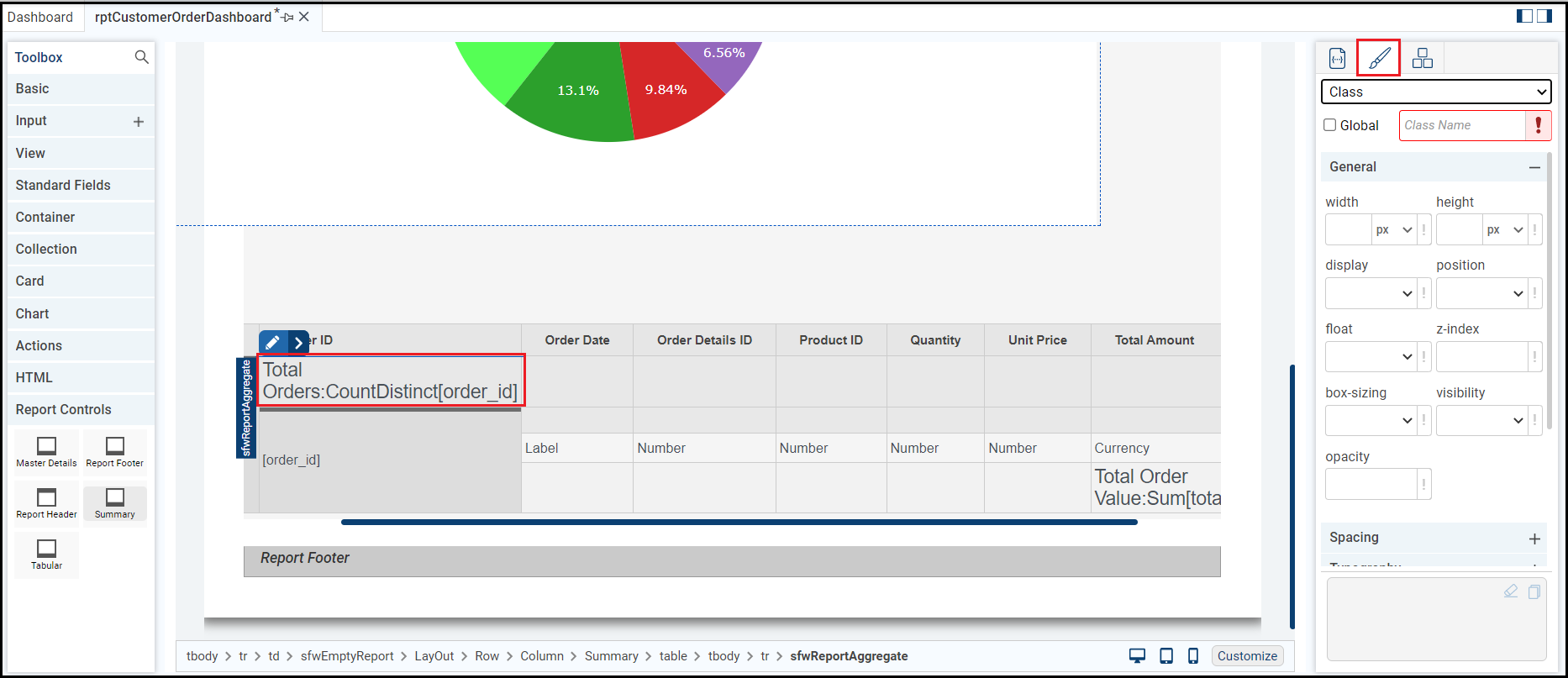 Select the sfwReportAggregate for Total Amount. Open the Style Editor tab and select the desired style properties as shown in the above step.