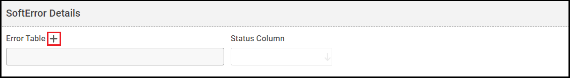 In the Soft Error Details tab, you are going to configure the soft error table. Click the + icon to add the error table.