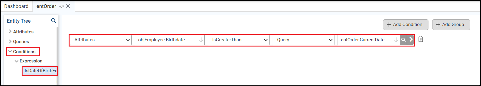 Open the Conditions section, then open the Expression section |